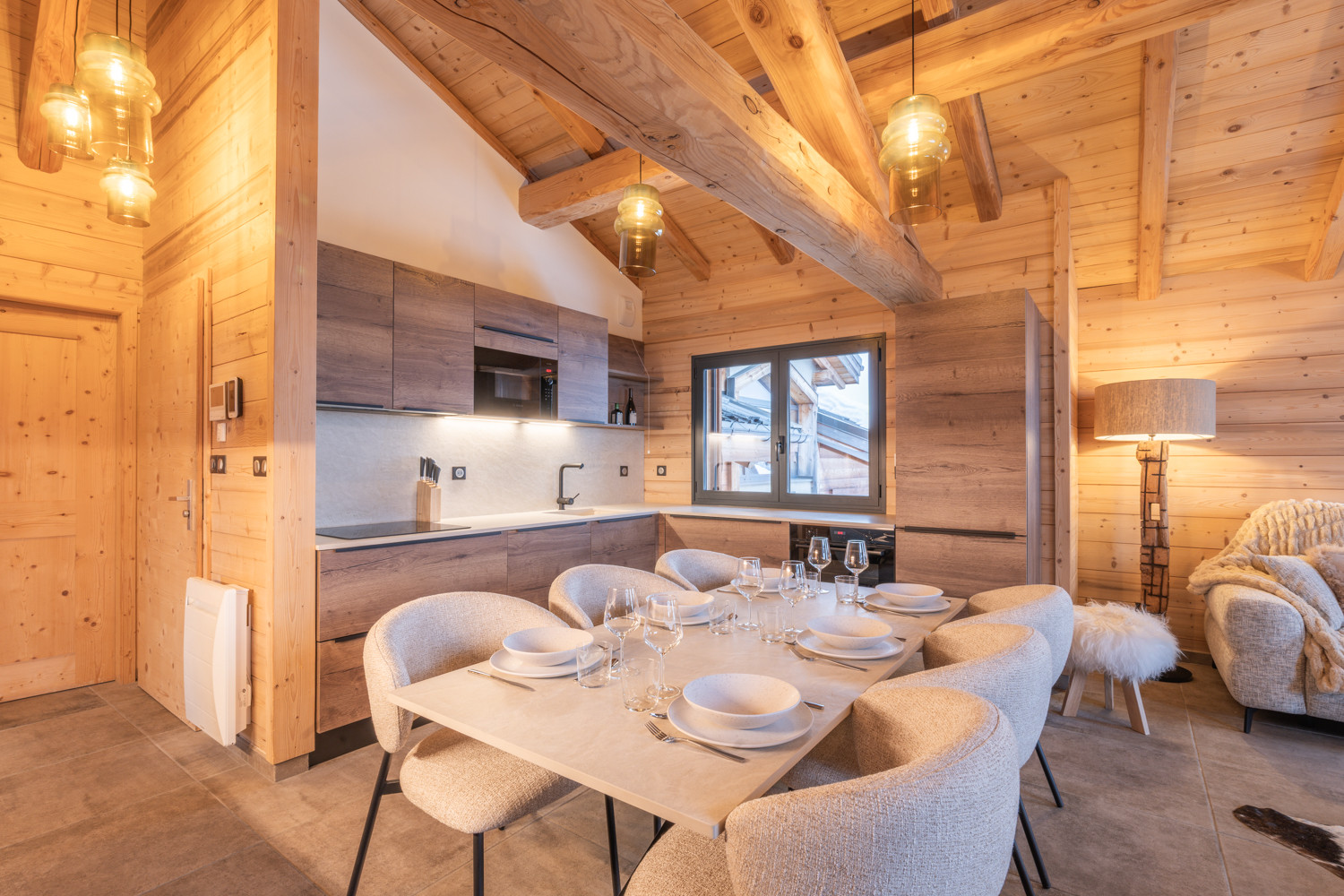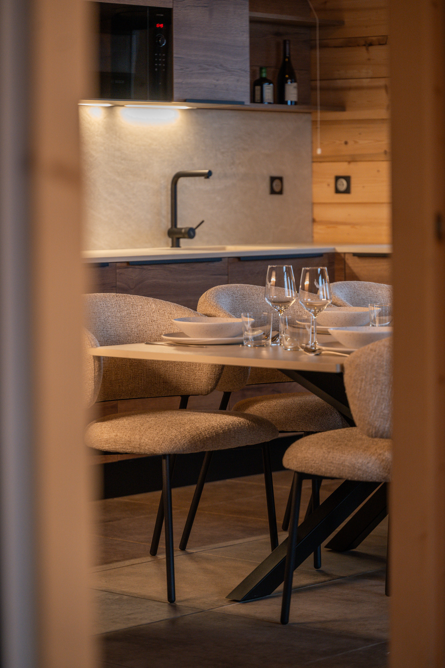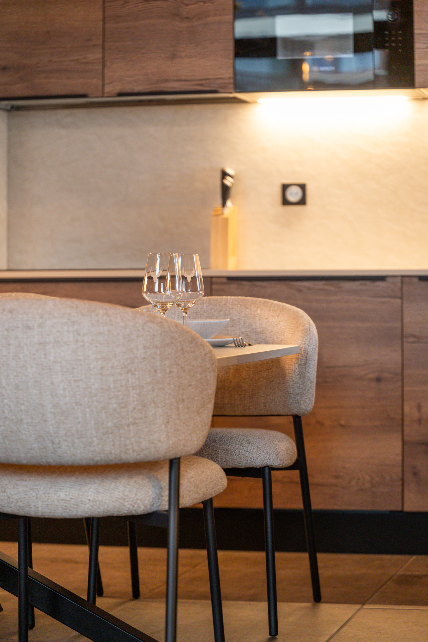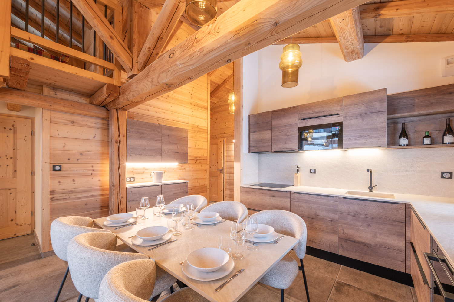 Entièrement équipée, la cuisine met à votre disposition tout le nécessaire pour votre séjour : four, micro-ondes, lave-vaisselle, machine à café filtre et Nespresso, appareils à fondue et à raclette.