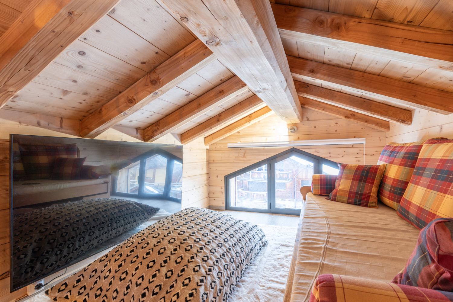 Vous trouverez également un coin télévision en mezzanine, idéal pour un espace détente supplémentaire.
