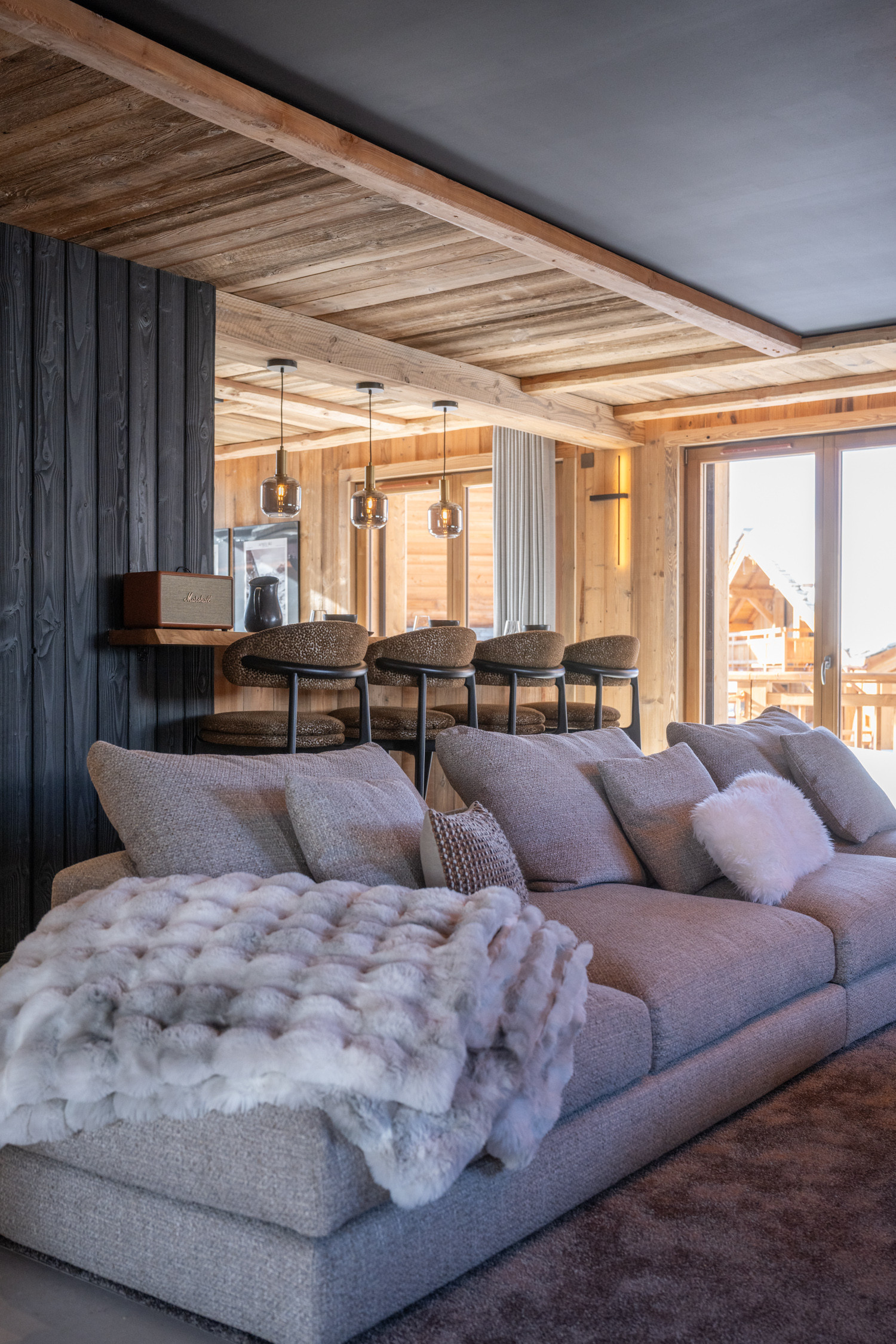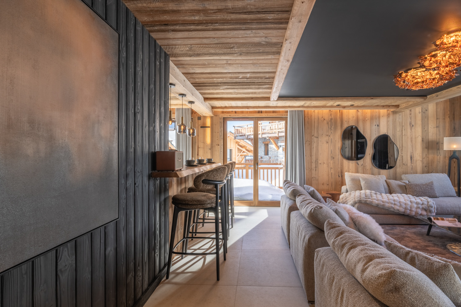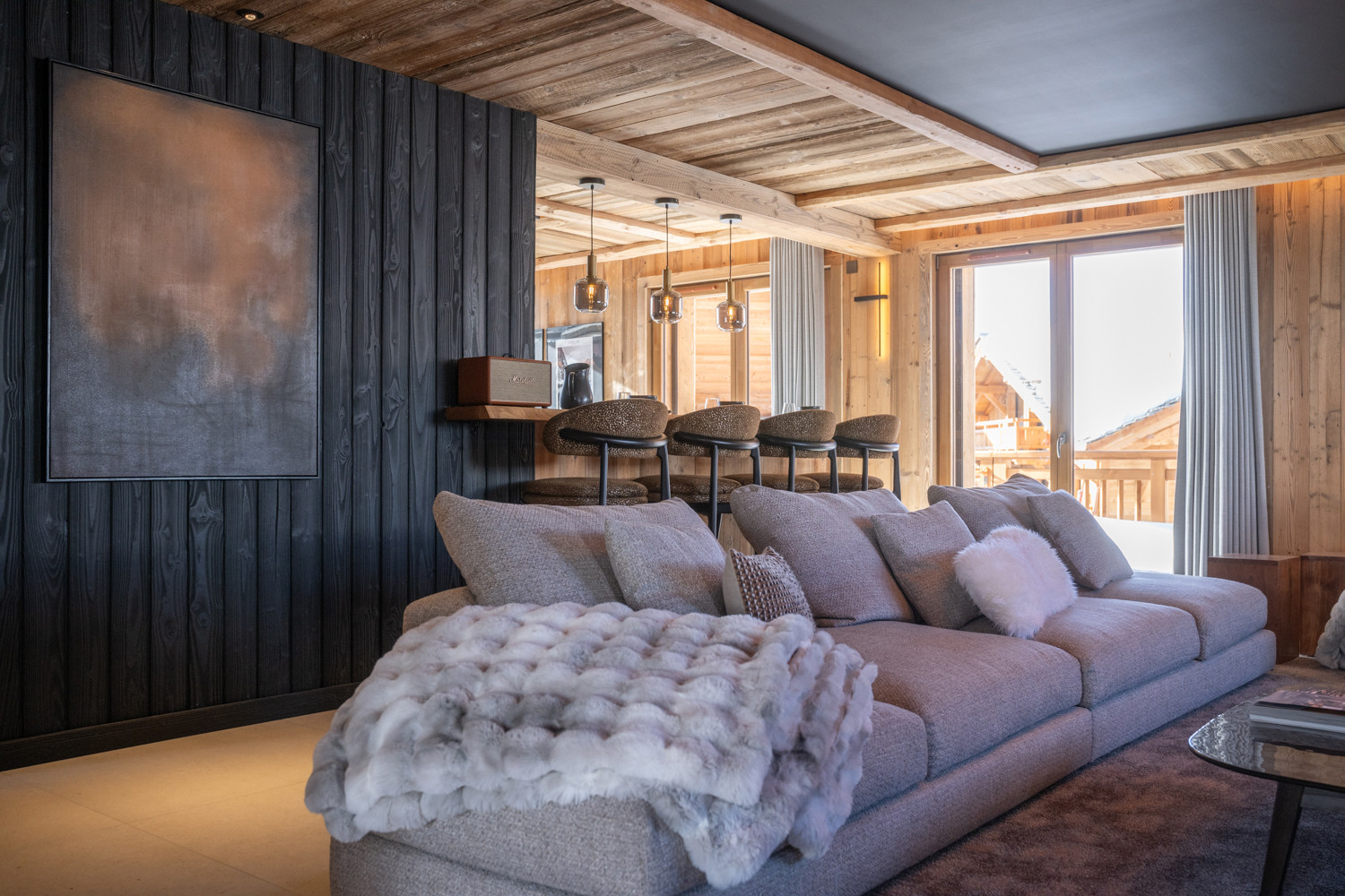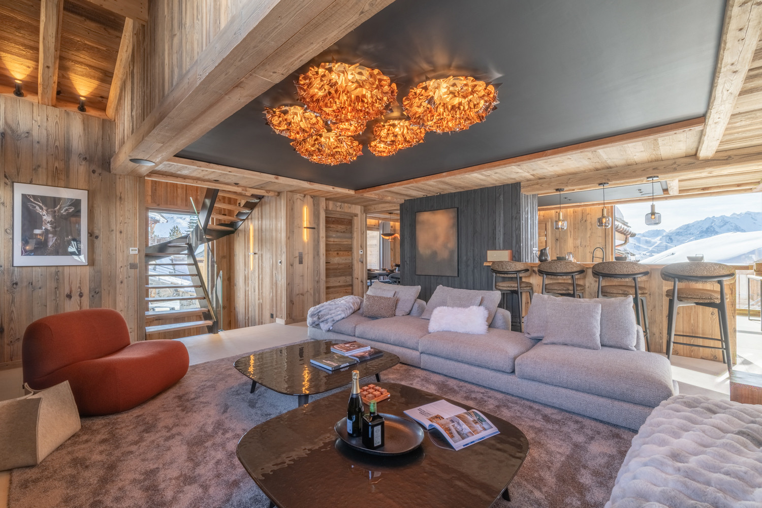 Ce magnifique chalet de 180 m², décoré avec goût et équipé de matériaux nobles, se déploie sur trois niveaux.