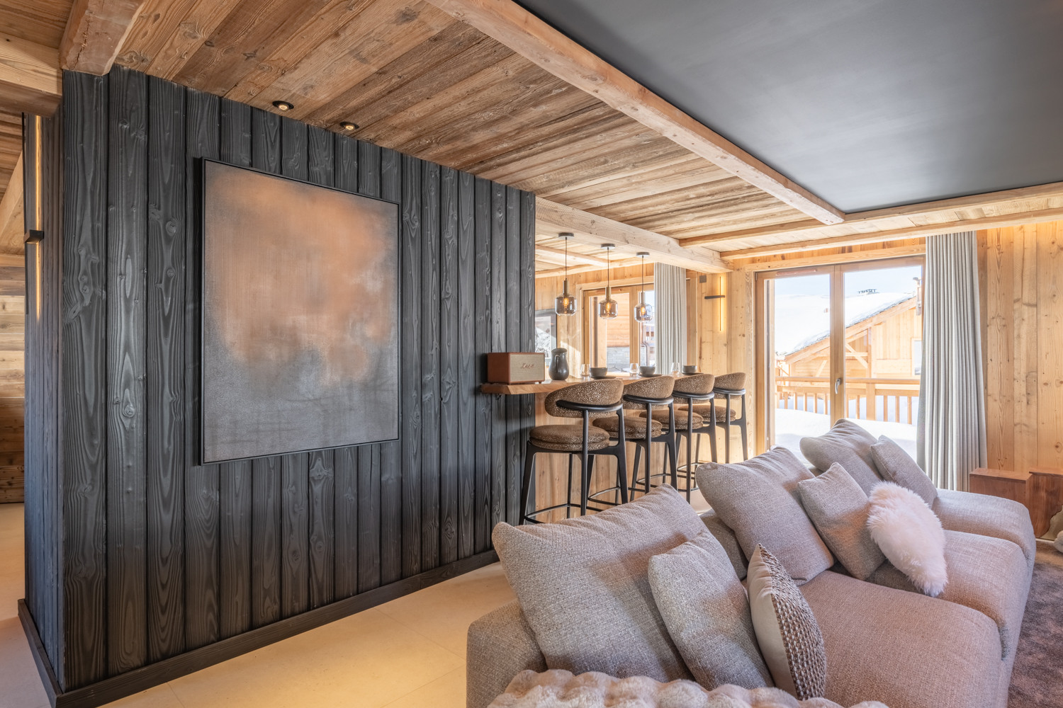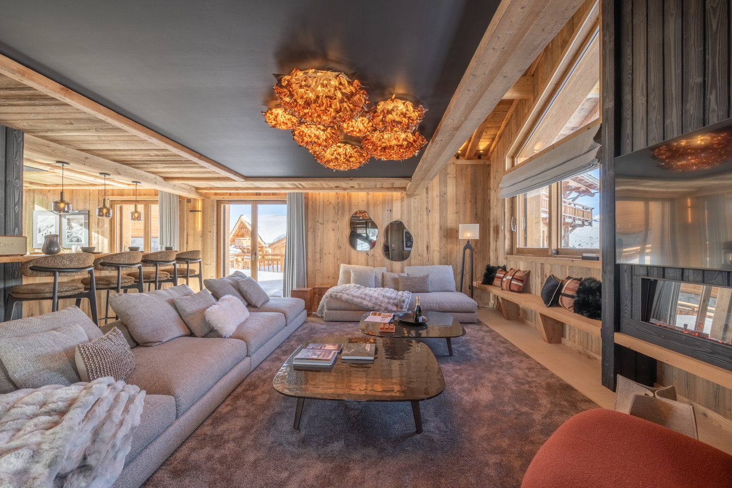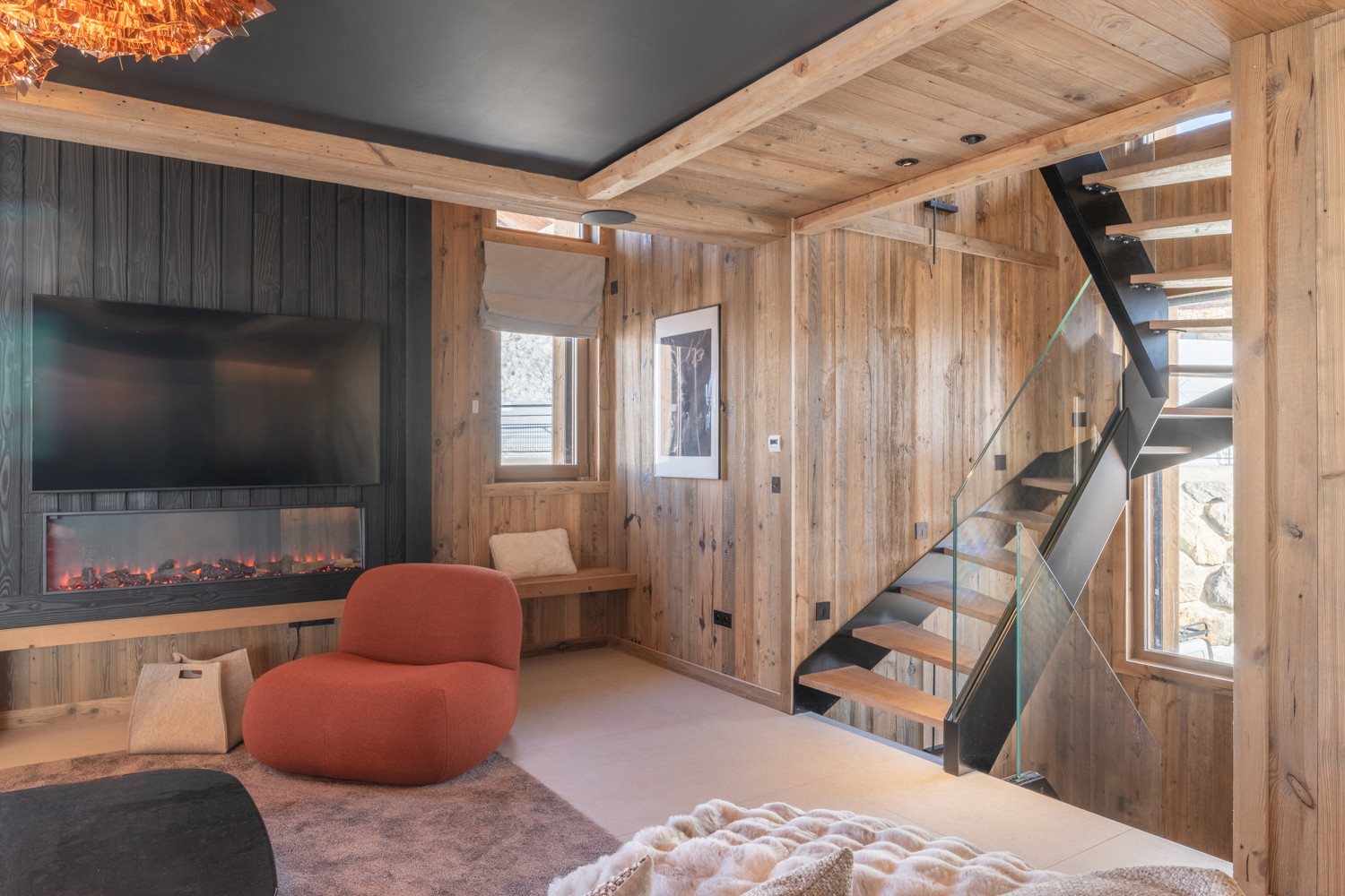 Ce magnifique chalet de 180 m², décoré avec goût et équipé de matériaux nobles, se déploie sur trois niveaux.