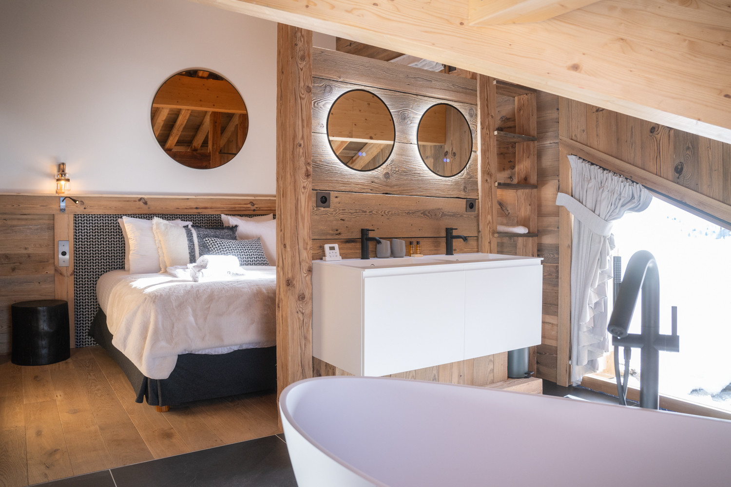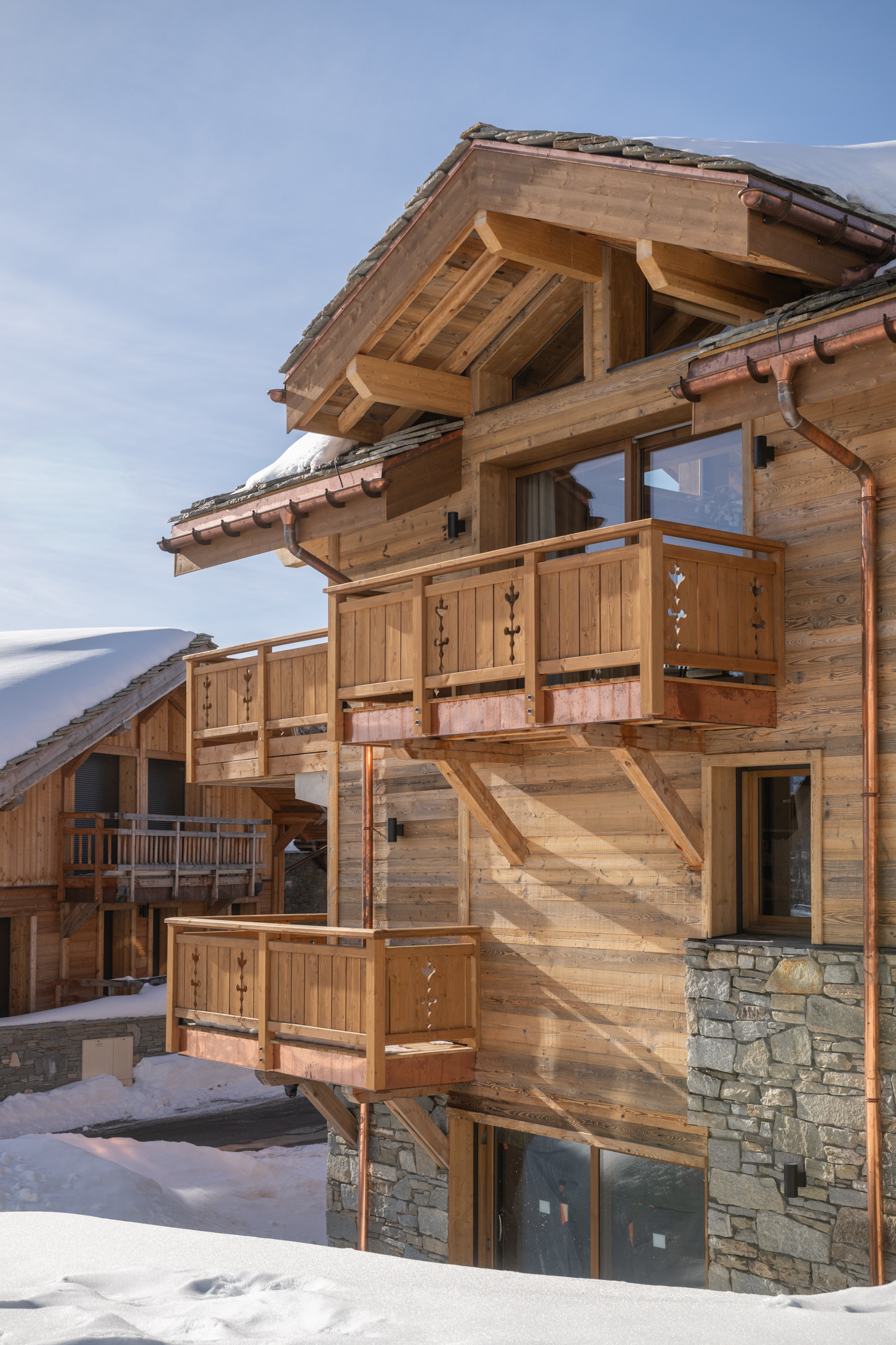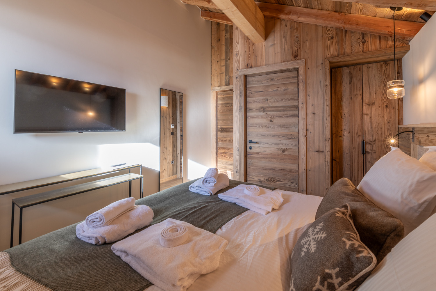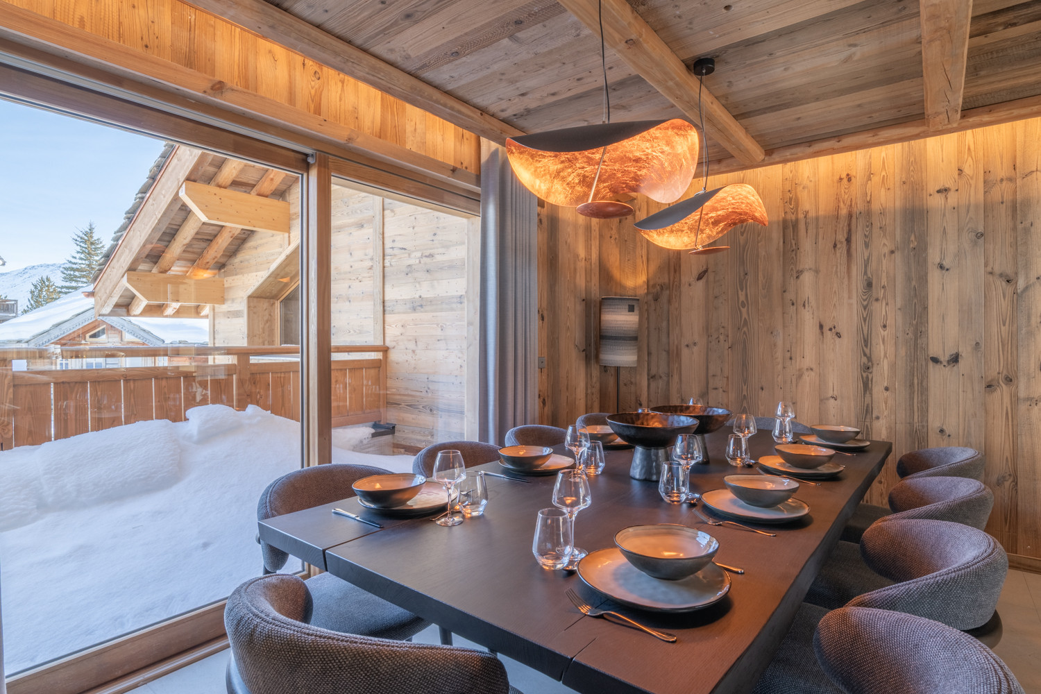 Ce magnifique chalet de 180 m², décoré avec goût et équipé de matériaux nobles, se déploie sur trois niveaux.