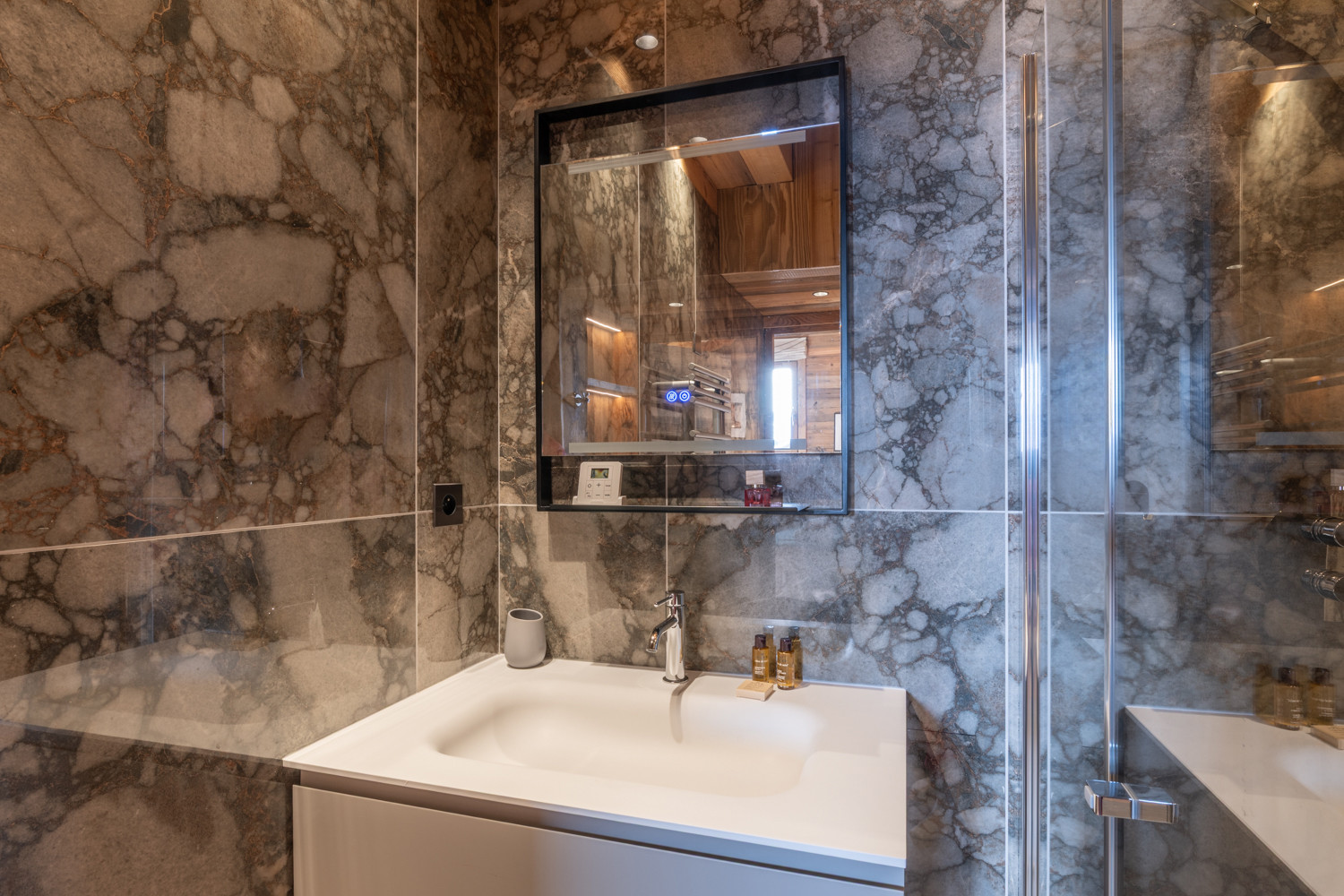 Vous trouverez également un toilette indépendant équipé d'un lave-main design Gessi.