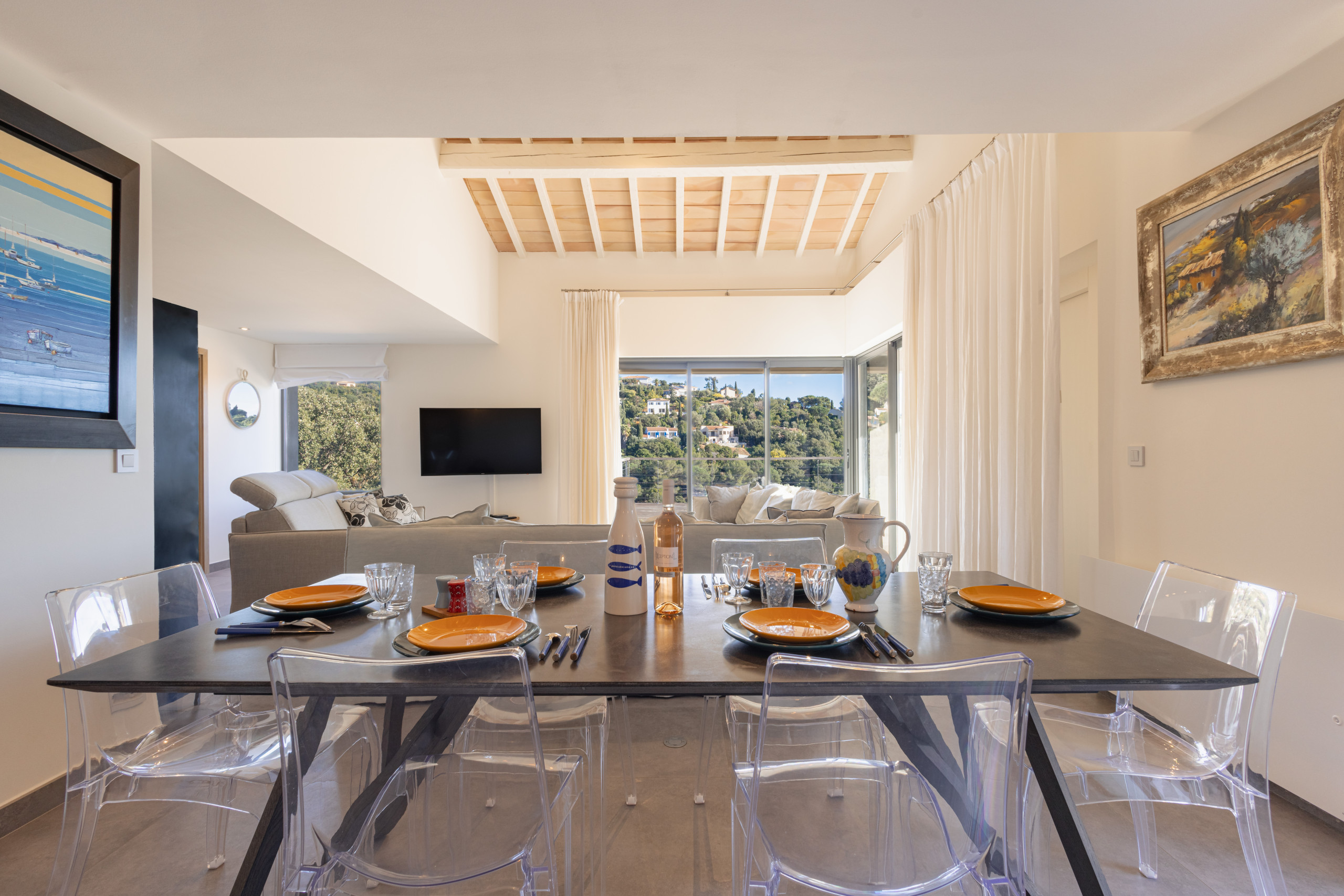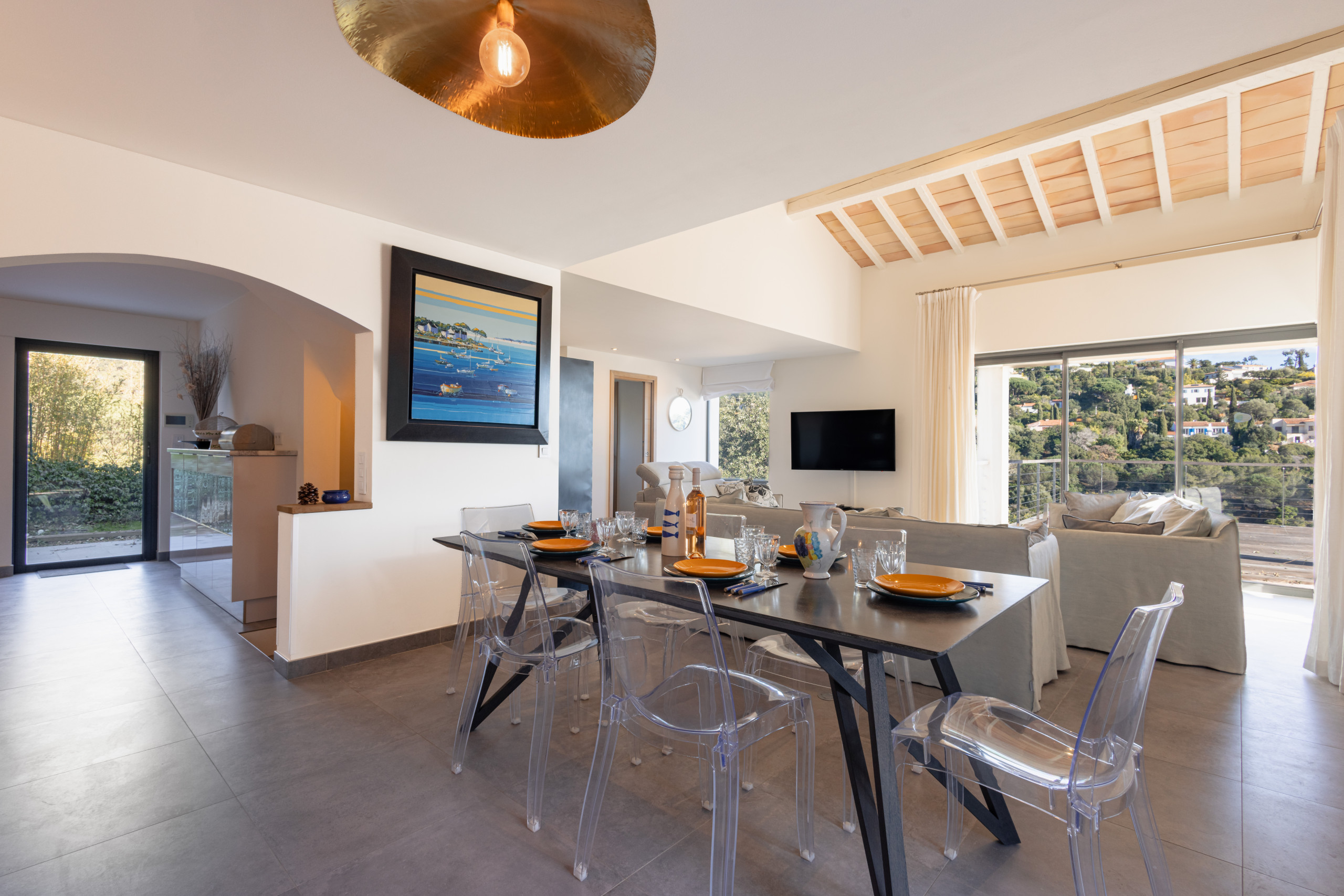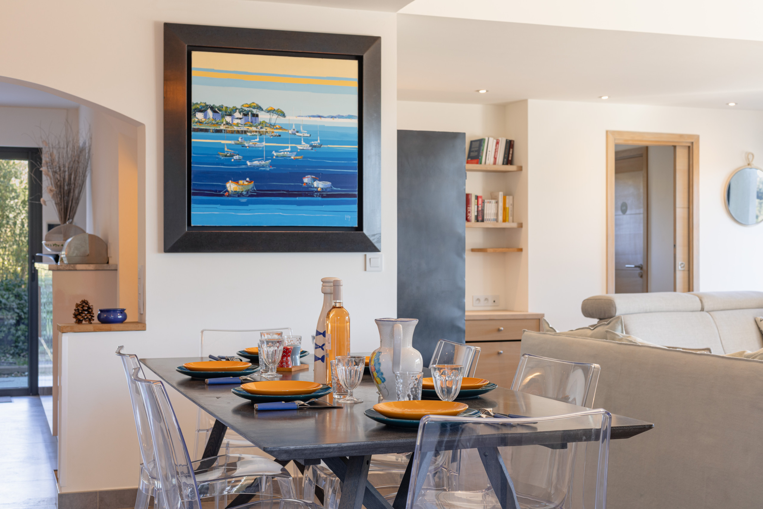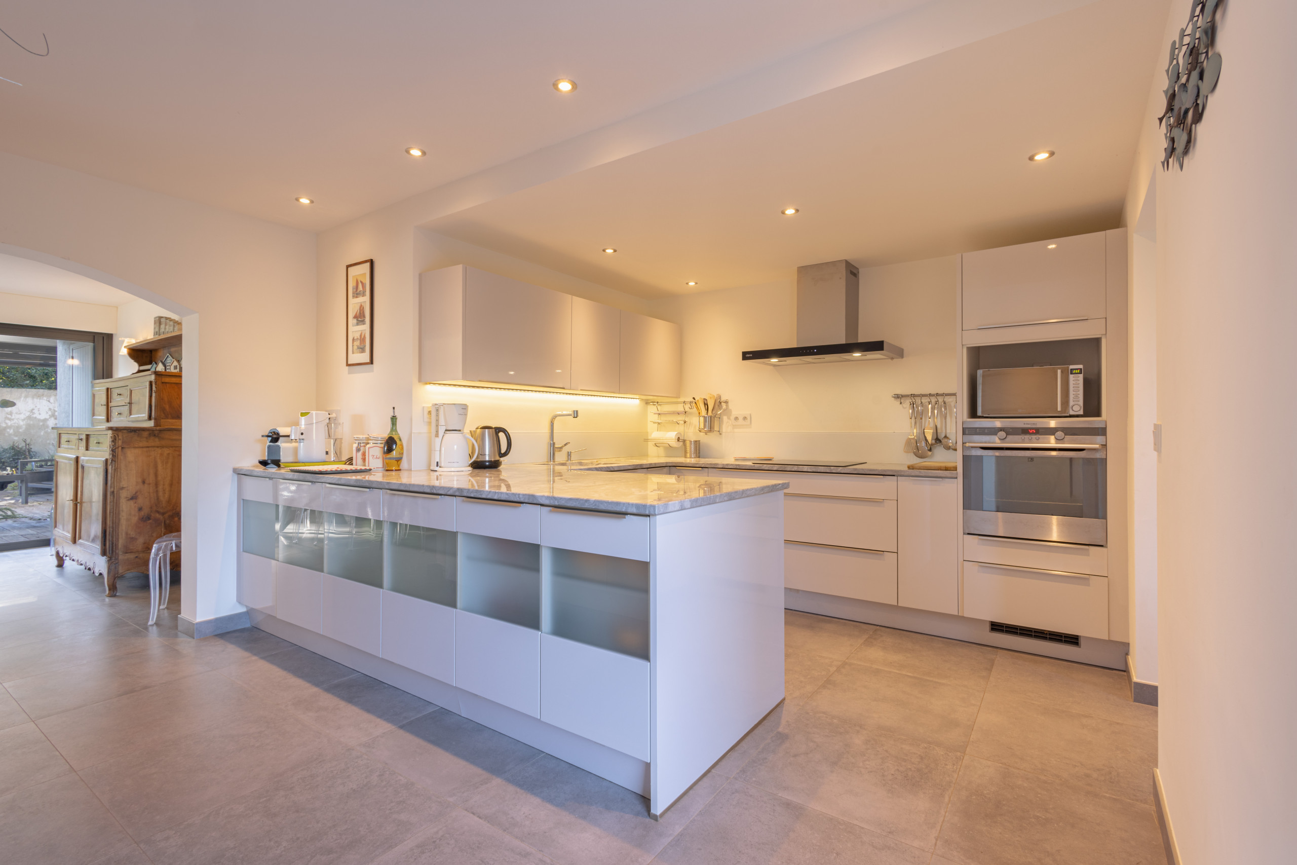 La cuisine entièrement équipée donne sur un magnifique espace de vie et s’ouvre sur une terrasse ensoleillée et parfaitement aménagée pour vos soirées d’été.