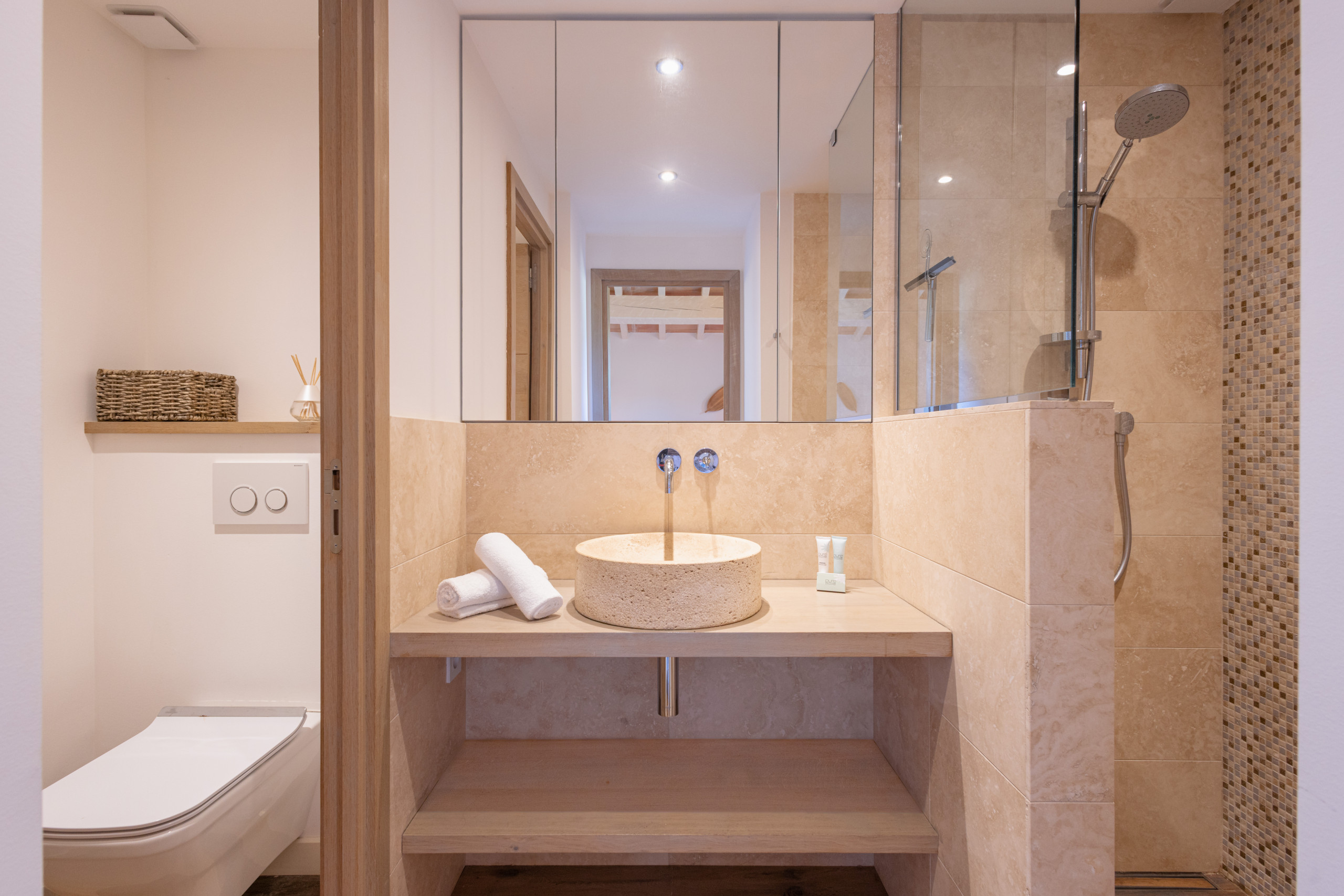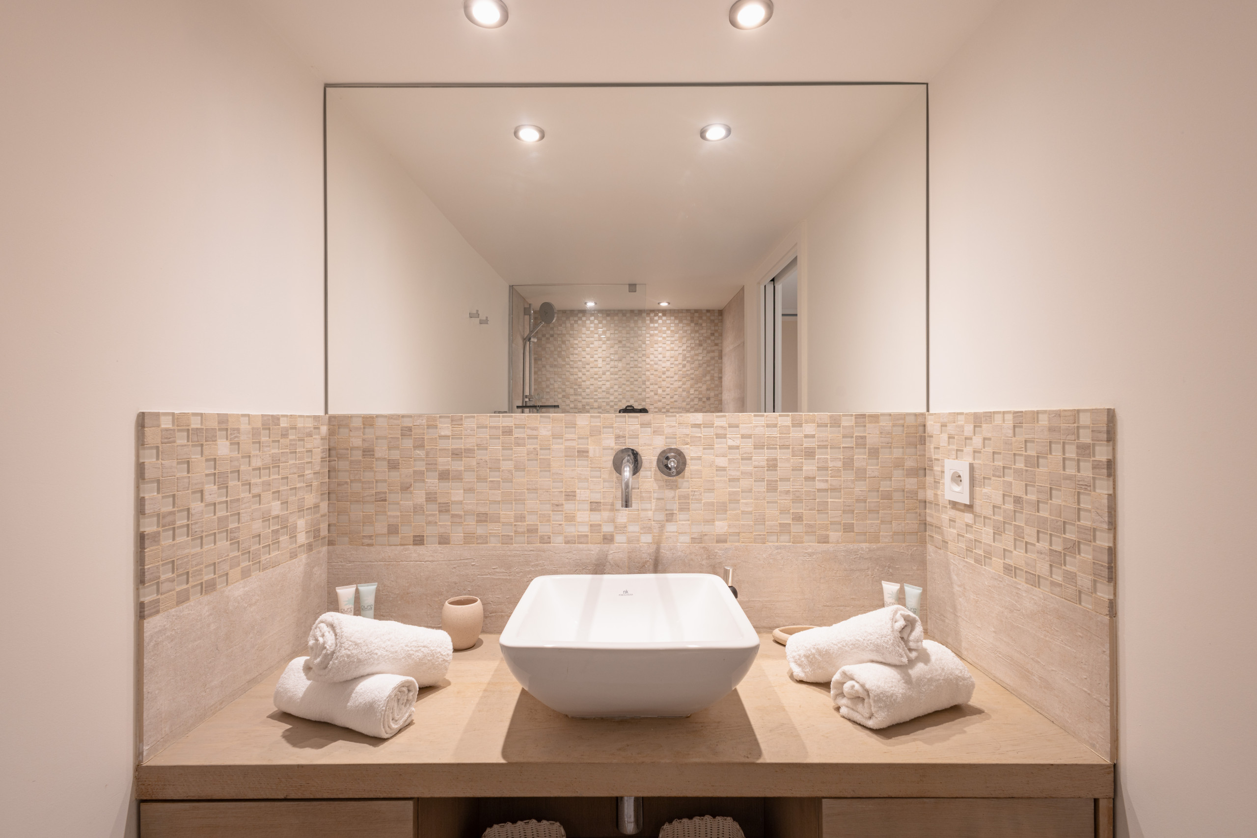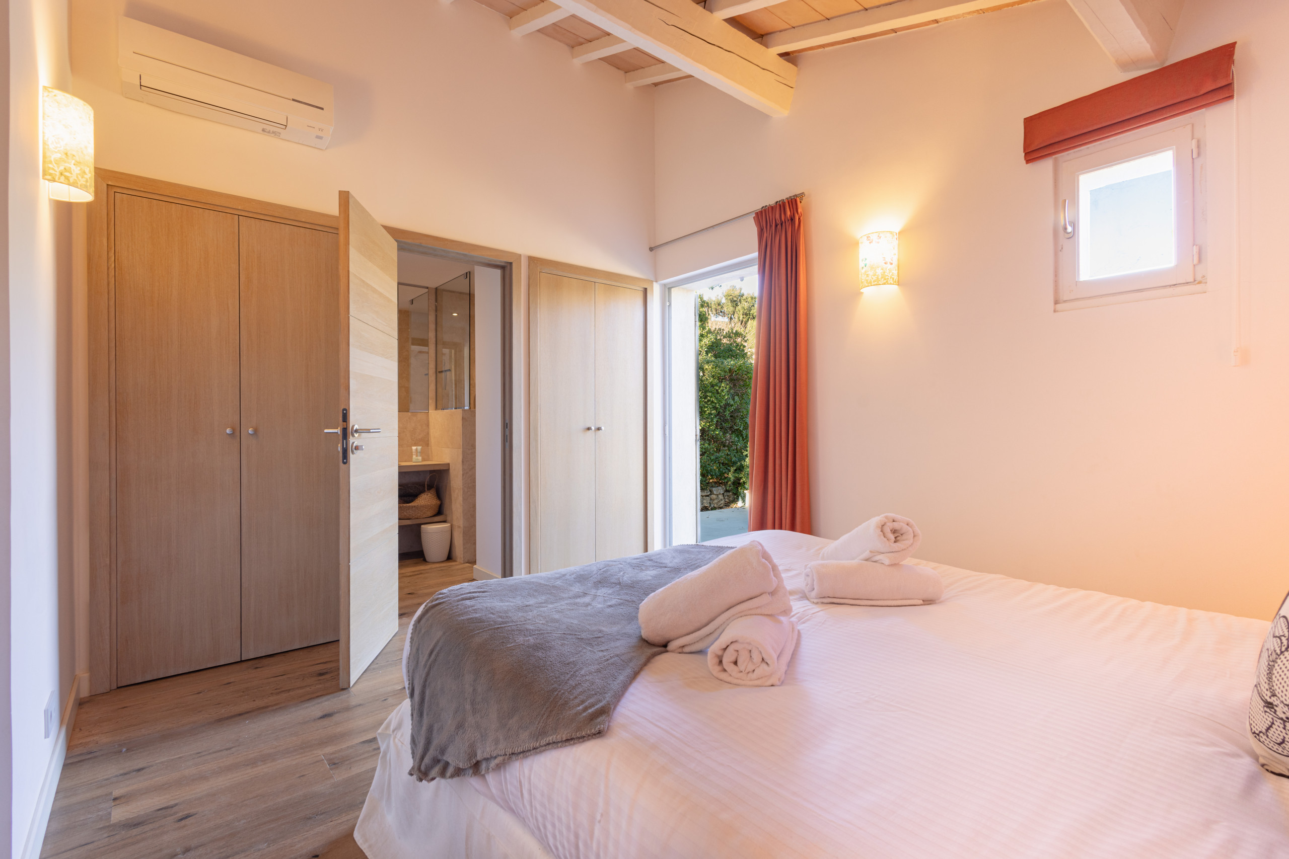 Dotée de 4 chambres avec salle de bain privative, la villa peut accueillir jusqu’à 9 personnes. Chaque chambre dispose de son propre accès extérieur.