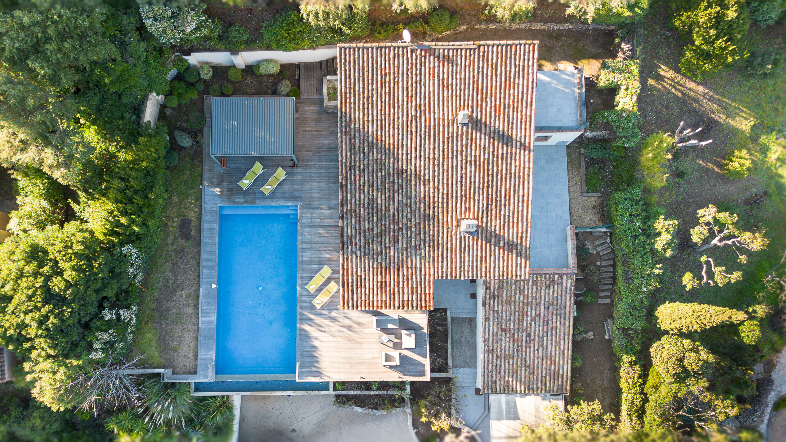 Piscine idéale pour les familles car entièrement sécurisée, se situe en contrebas de la maison principale.